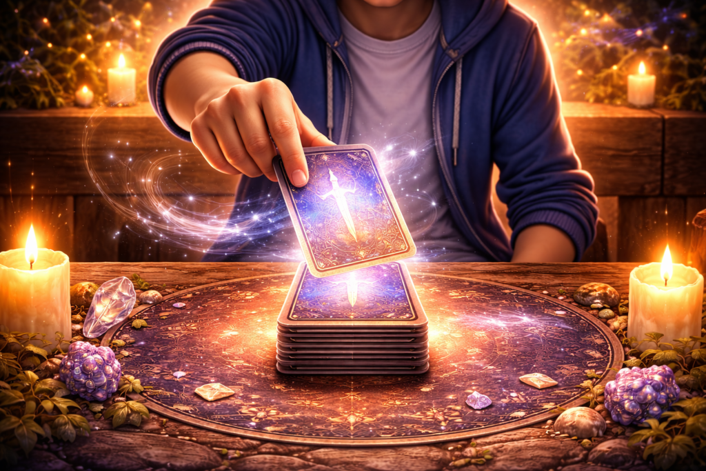 This method embodies the Swords’ energy of intellectual clarity and decisive action, functioning exactly like a competitive player “top-decking” the solution they need in a critical turn. It is an acknowledgment that the shuffling algorithm has done its work. When you use this technique, you are emphasizing trust in the RNG (Random Number Generation). It suggests that the answer you receive is the most direct consequence of the intention you have just set. The top card represents the immediate strategic directive, the one resource that was precisely positioned at the moment you locked in your queryThe input command for the system. A reading is only as power More. It is a clean, quick capture that minimizes interference and relies entirely on the successful establishment of a pure field of random potential.
