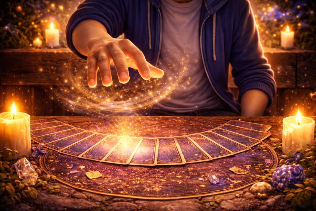Once the cards are laid out like a massive, undiscovered region of a map, the Trainer hovers their non-dominant hand over the fan, waiting for a subtle signal—a magnetic pull or a sense of “heat” emanating from a particular area. When a connection is felt, the Trainer selects and pulls the card from that specific spot. This technique is deeply connected to the Cups’ energy of intuition and subconscious flow. By bypassing pure mechanical randomness, you allow your inner Gardevoir (The High Priestess), who senses unseen energies, to guide your hand. This approach requires the patience of a researcher and a high degree of sensitivity to subtle shifts, trusting your Game Sense to locate the hidden item within the tall grass.